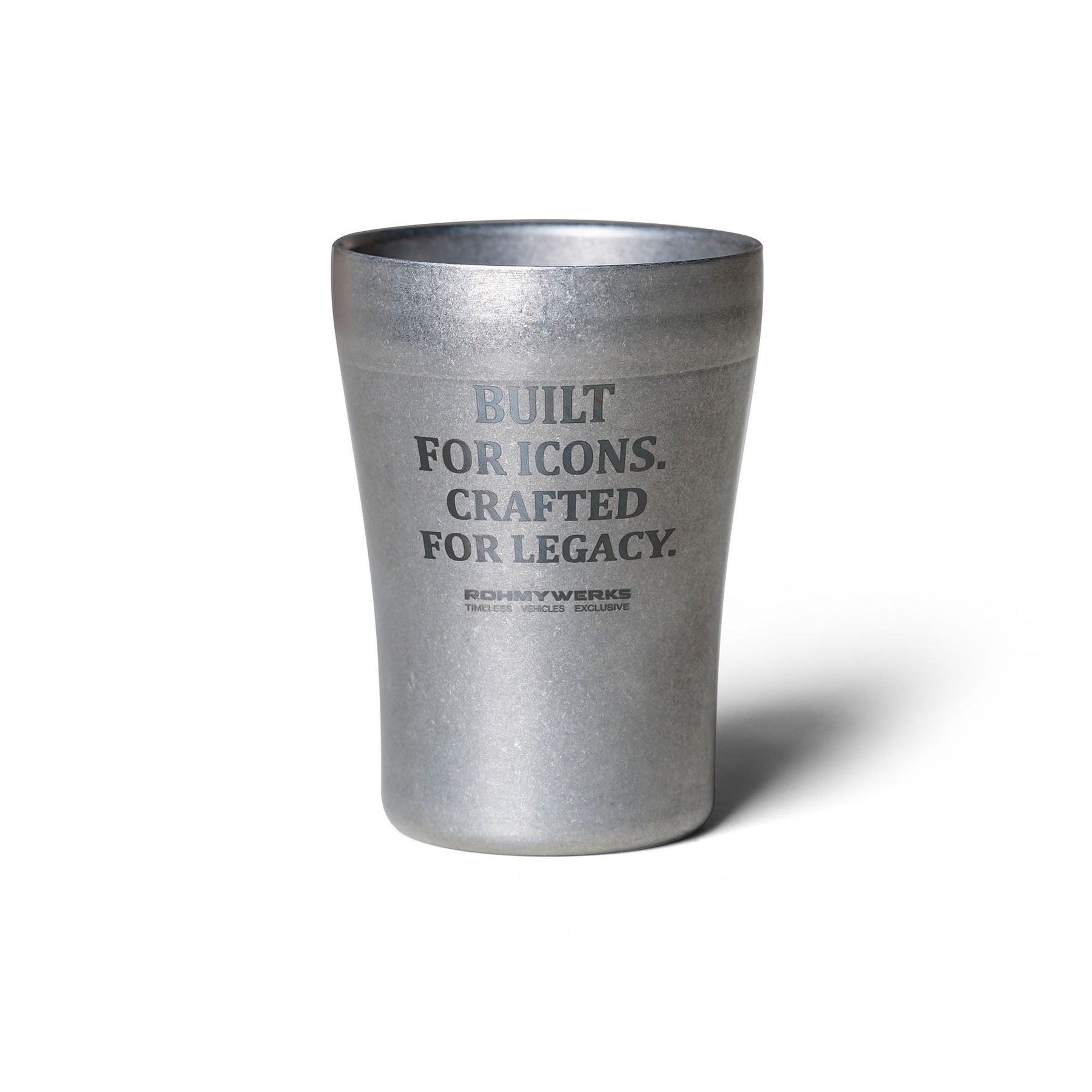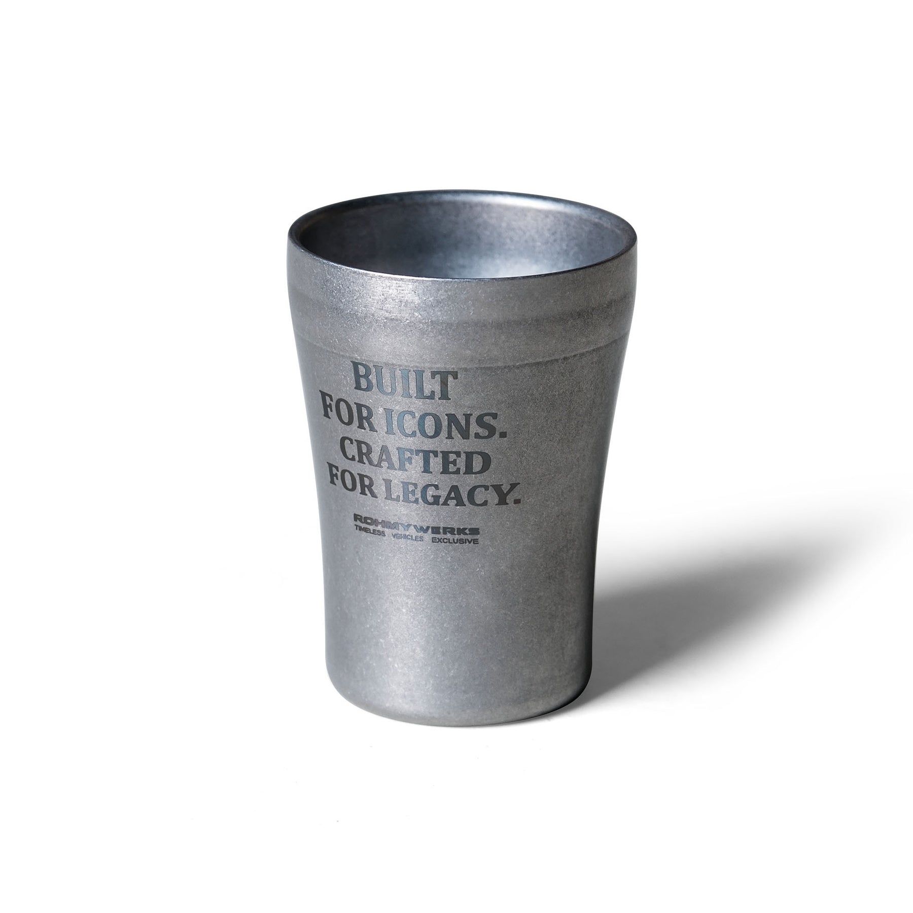 ROHMY Heritage Cup – Japan-made from premium stainless steel with a double-layer construction for superior insulation and a solid, balanced feel in hand. Finished in an aged industrial texture that develops character over time, this 275ml cup blends everyday function with timeless heritage design. Built for durability, designed to last.